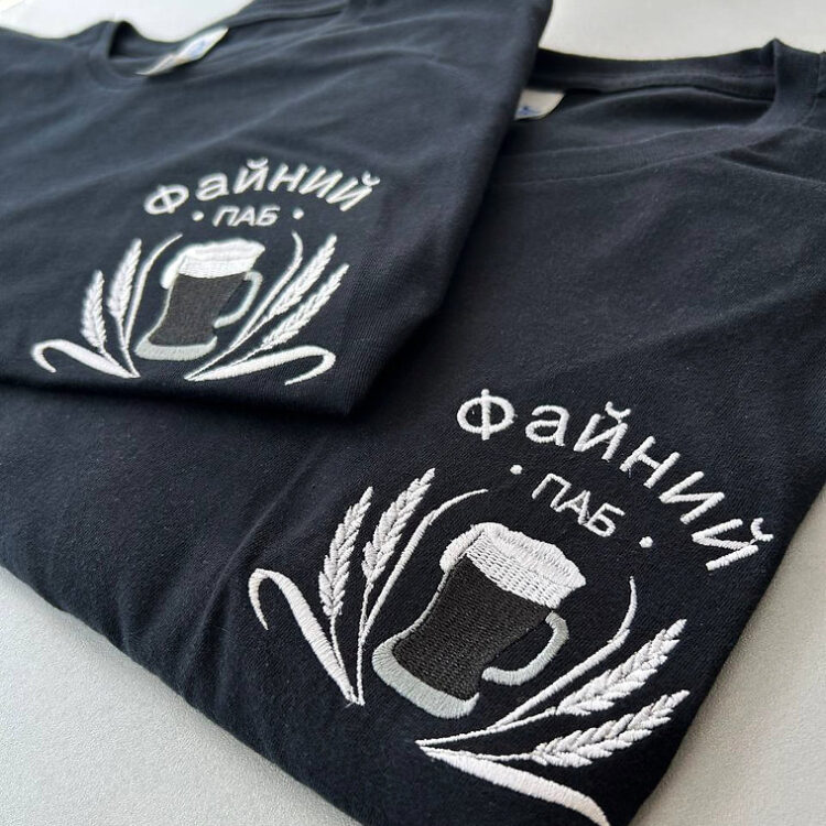 - Вишивка логотипа на футболці