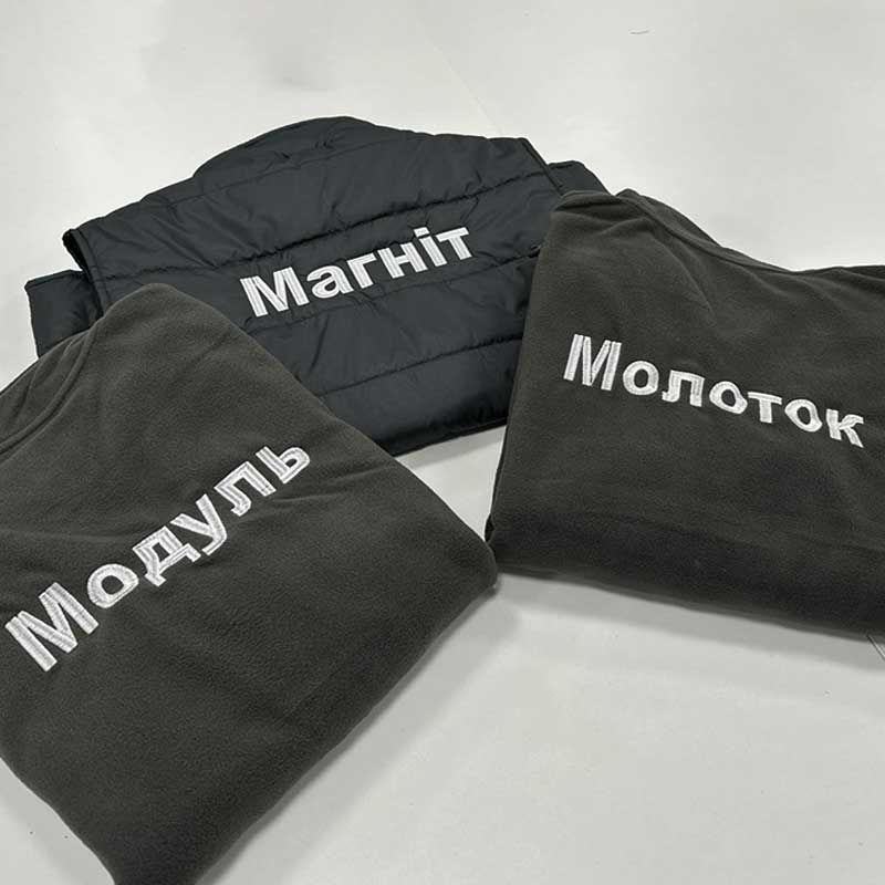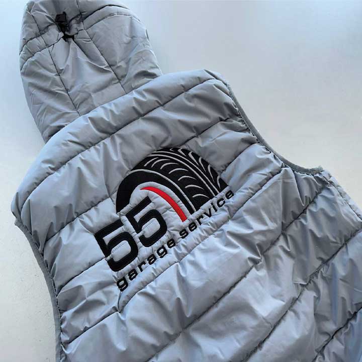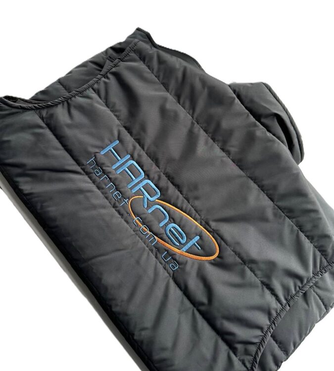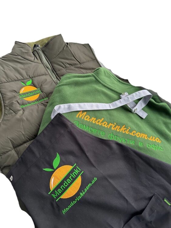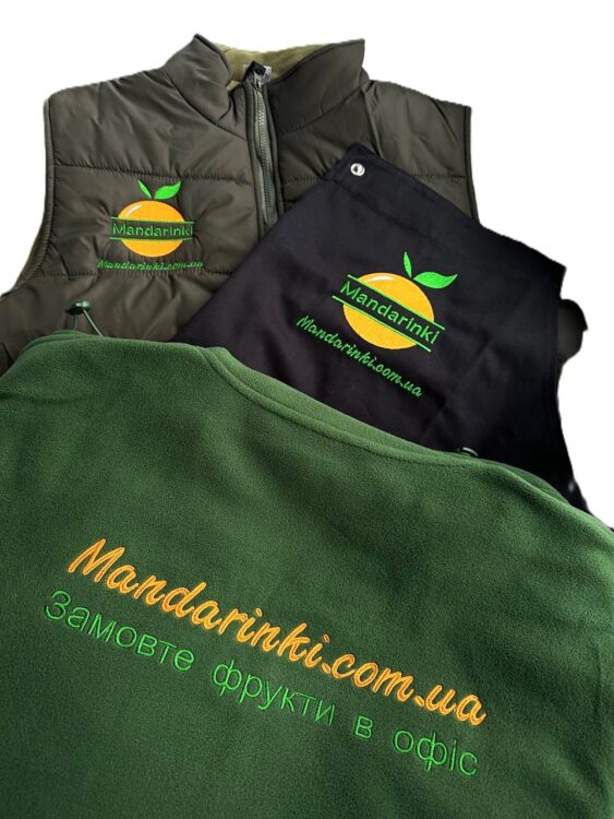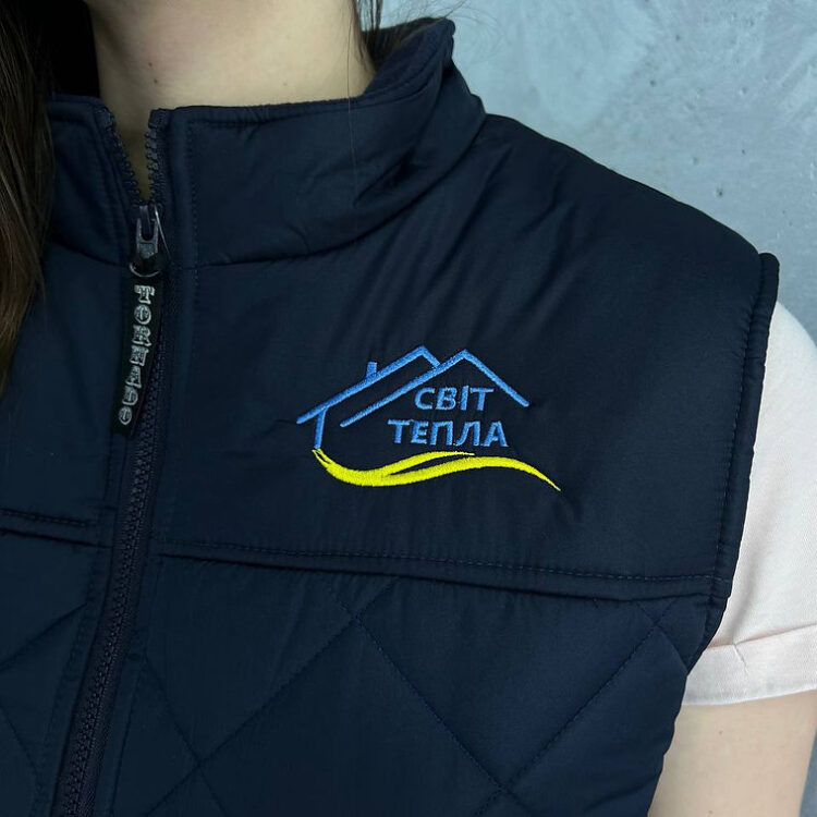 - Вишивка логотипа на жилеті