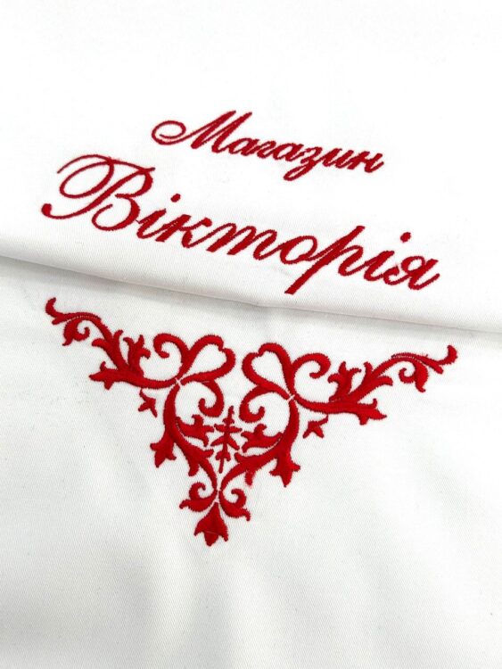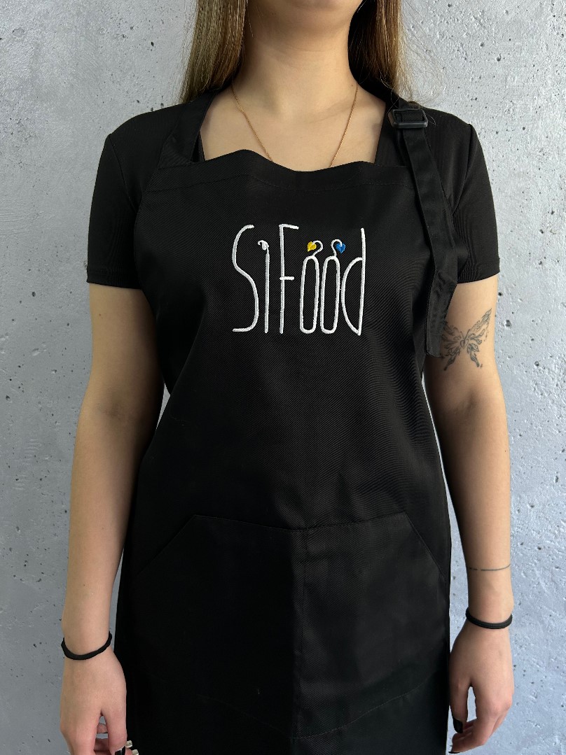 - Вишивка логотипа на фартуху