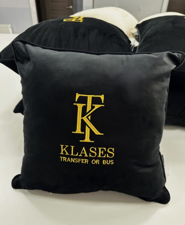 - Вишивка логотипа на пледі